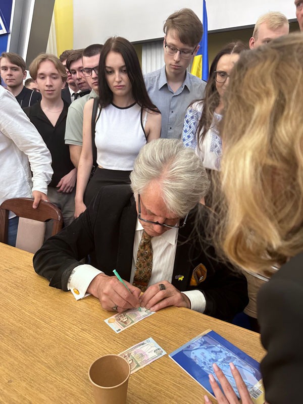 Наприкінці всіх учасників запросили до лектора – запропонували зробити колективне фото та поспілкуватися особисто. Також студенти отримали банкноти, підписані паном Ющенком.