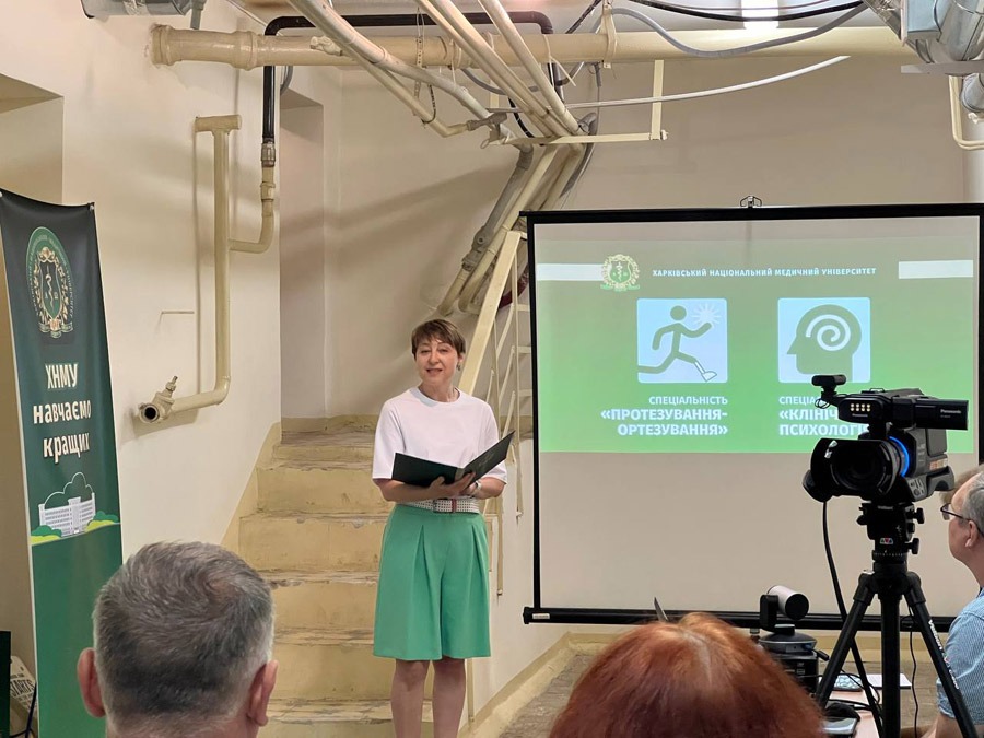 Захід відкрив проректор з науково-педагогічної роботи Максим Хаустов, який наголосив, що ХНМУ є першим університетом в Україні, який запровадив такі програми, та єдиним ЗВО, що має протезно-ортезну лабораторію. «Сьогодення дає виклики, і нові спеціальності будуть дуже потрібні нашій країні. Ми маємо лабораторію, де не тільки надаємо допомогу постраждалим, а й навчимо це робити студентів. Наші висококваліфіковані викладачі зроблять все можливе для того, щоб здобувачі освіти отримали відповідні знання та допомогли своїй країні». Також до привітань долучилася радниця міністра соціальної політики, генеральна директорка Благодійного фонду «Протез Хаб» Антоніна Кумка, яка безпосередньо брала участь у розробці освітньої програми «Протезування–Ортезування»
