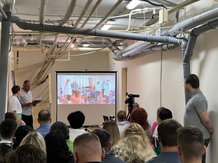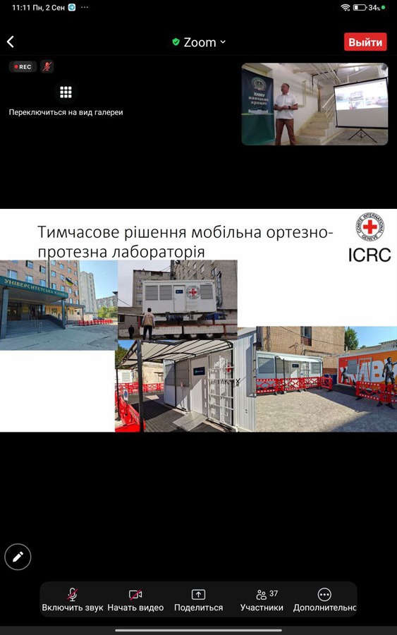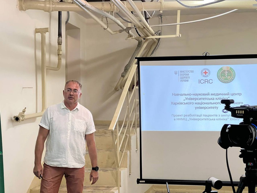 З презентацією проєкту реабілітації з ампутаціями в НМЦ «Університетська клініка ХНМУ» Центру психічного здоров’я виступив заступник директора університетської клініки Володимир Коростій. Пан Володимир привітав усіх присутніх від імені колективу і наголосив на тому, що клініка є багатопрофільною лікарнею і надавала допомогу хворим із різними хворобами, проте тепер може допомогти і пацієнтам з ампутаціями.