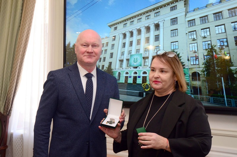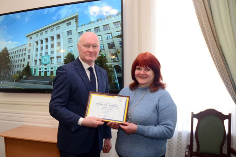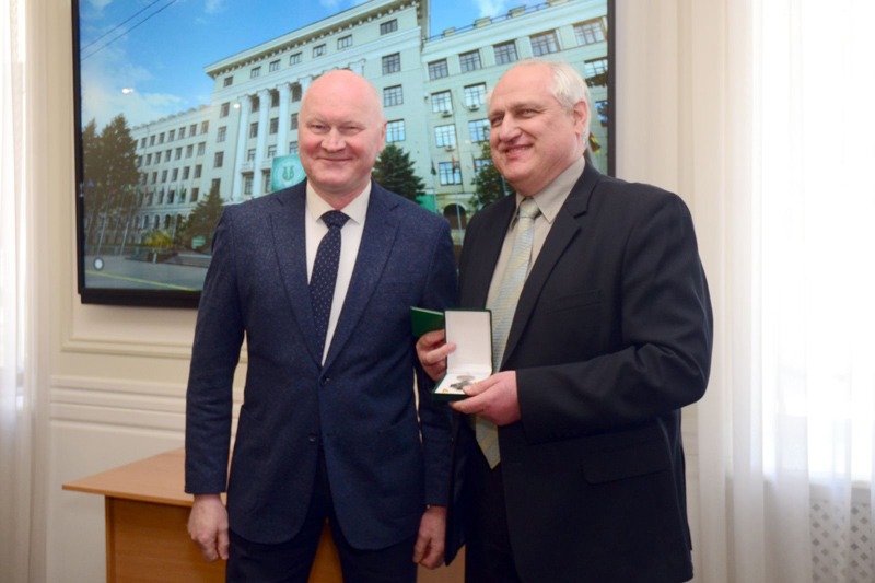 На початку заходу в рамках відзначення ювілейних дат співробітників ХНМУ ректор університету Валерій М’ясоєдов привітав ювілярів та вручив їм почесні відзнаки.
