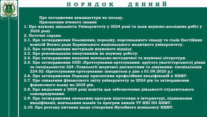 30 січня 2025 р. відбулося засідання Вченої ради Харківського національного медичного університету в дистанційному форматі.
