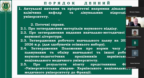 27 березня 2025 р. у дистанційному форматі відбулося засідання Вченої ради Харківського національного медичного університету.