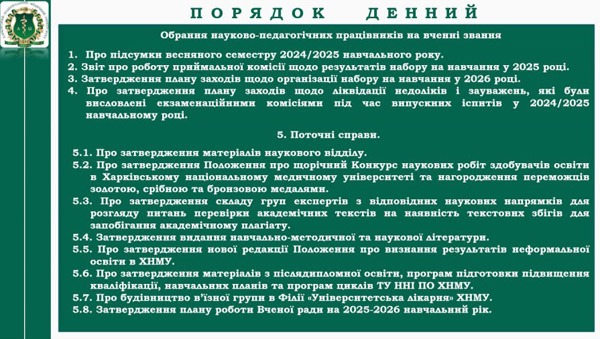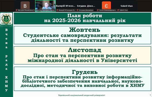 25 вересня 2025 року в дистанційному форматі відбулося засідання Вченої ради Харківського національного медичного університету.
