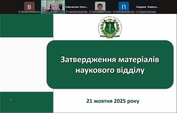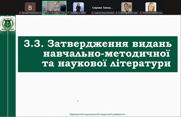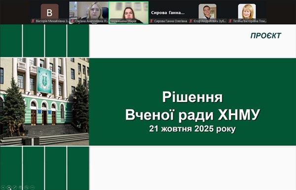 21 жовтня 2025 р. у дистанційному форматі відбулося засідання Вченої ради Харківського національного медичного університету під головуванням заступниці голови Вченої ради, професорки Оксани Наконечної.