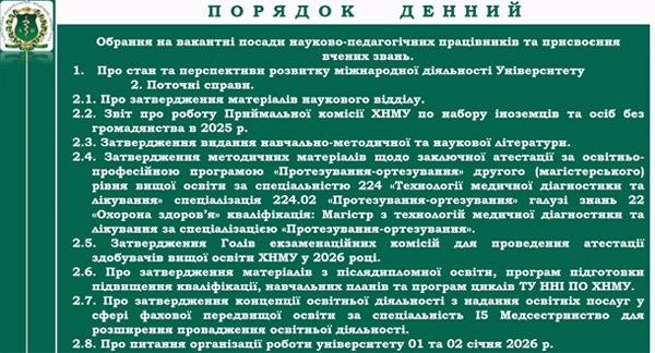 27 листопада 2025 року в дистанційному форматі відбулося засідання Вченої ради Харківського національного медичного університету.