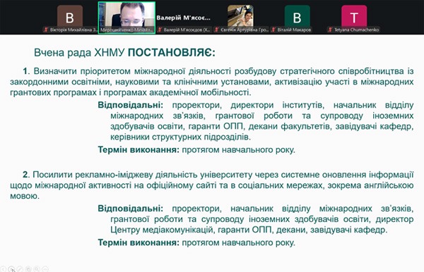 За результатами обговорення Вчена рада затвердила проєкт рішення щодо стану та перспектив розвитку міжнародної діяльності університету.