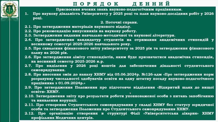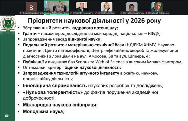 22 січня 2026 року в дистанційному форматі відбулося чергове засідання Вченої ради Харківського національного медичного університету.
