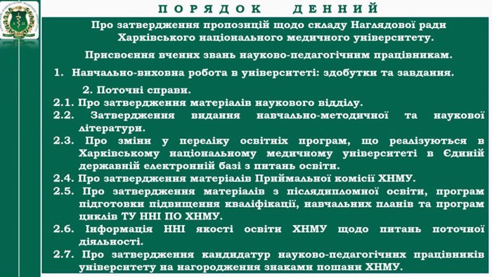 Засідання Вченої ради засвідчило системний підхід Харківського національного медичного університету до поєднання освітнього процесу з вихованням особистості майбутнього лікаря.