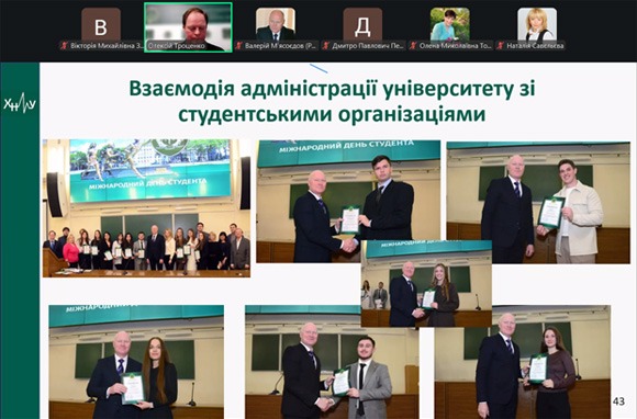 Доповідач акцентував на активній волонтерській діяльності працівників і студентів університету, а також на ролі молодіжних організацій, зокрема органів студентського самоврядування та профспілкового комітету студентів.
