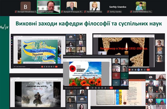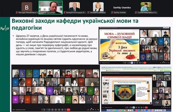 Окрему увагу у доповіді було приділено вшануванню пам’яті героїв – випускників університету, які загинули, захищаючи Україну. Також висвітлено виховну діяльність кафедр гуманітарного профілю, Наукової бібліотеки, комплексу «Музей медицини», Центру гендерної освіти та інших підрозділів.