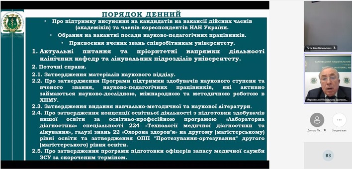 28 березня 2024 р. відбулося засідання Вченої ради Харківського національного медичного університету в дистанційному форматі.
