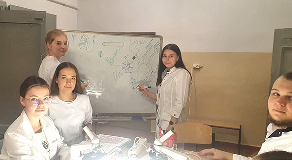 На кафедрі гістології, цитології та ембріології Харківського національного медичного університету пройшли перші заняття у гібридному форматі. Здобувачі освіти, які перебувають у Харкові, змогли відвідати практичні заняття очно. Пари проводяться у безпечному місці з дотриманням необхідних заходів безпеки.