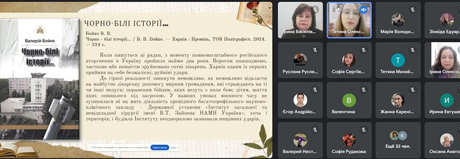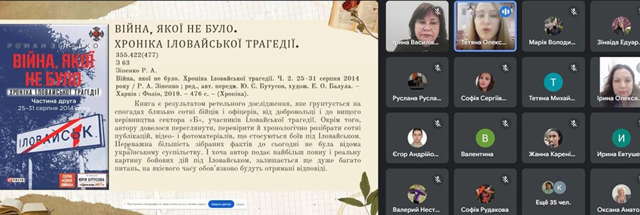 Студенти виступили з доповідями: «Вплив воєнних конфліктів на творчість українських письменників» (Руслана Мисан, ІІІ медфакультет), «Сила української літератури у воєнний час» (Зінаїда Ращупкіна, І медфакультет), «Лагідність українського літературного слова як спосіб терапії» (Марія Чернявська, ІІ медфакультет). Бібліотекарі представили огляд літератури «Російсько-українська війна на сторінках сучасної української літератури» з фонду нашої бібліотеки (Тетяна Бабак, завідувачка відділу обслуговування користувачів).