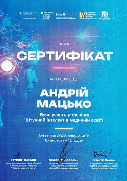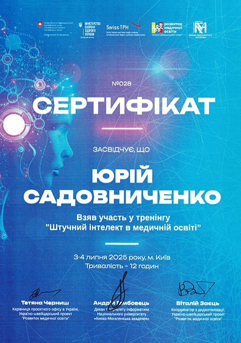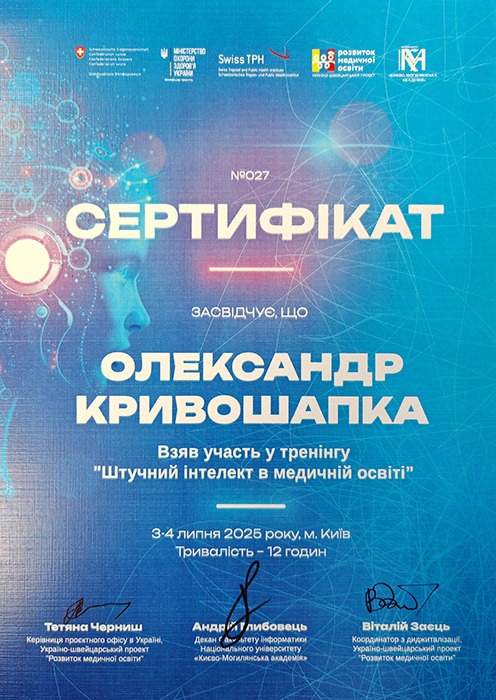 3–4 липня 2025 року в Києві відбувся дводенний тренінг «Штучний інтелект у медичній освіті», організований Україно-Швейцарським проєктом «Розвиток медичної освіти». На заході зібралися викладачі, ІТ-фахівці та лікарі-ментори із медичних університетів з усієї України. Метою події стало ознайомлення з потенціалом сучасних ШІ-інструментів для підвищення якості навчання та оптимізації щоденної роботи медичних працівників.