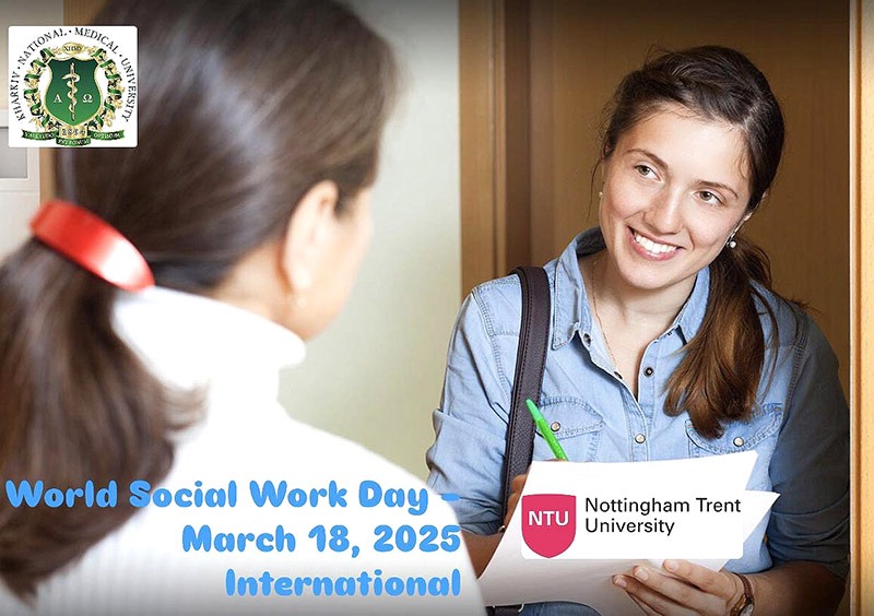 Щорічно третього вівторка березня відзначається Всесвітній день соціальної роботи, метою якого є привернення уваги влади та суспільства до проблеми соціальної незахищеності, обмін досвідом у питаннях соціальної роботи та розвиток соціальної сфери. Напередодні цього дня за ініціативою кафедри психіатрії, наркології, медичної психології та соціальної роботи ХНМУ було проведено онлайн захід разом з Ноттінгемським університетом Трент (NTU).