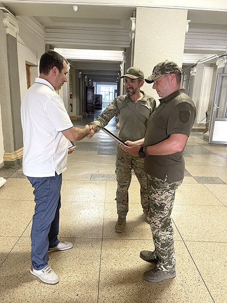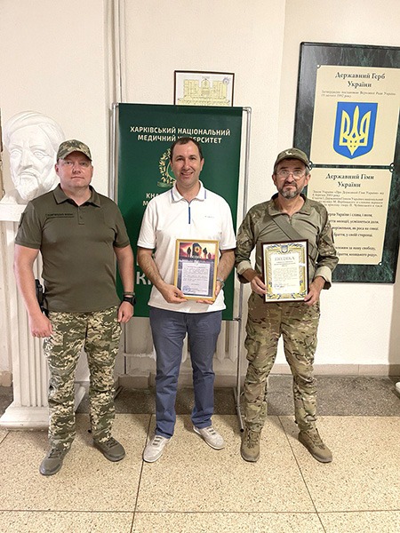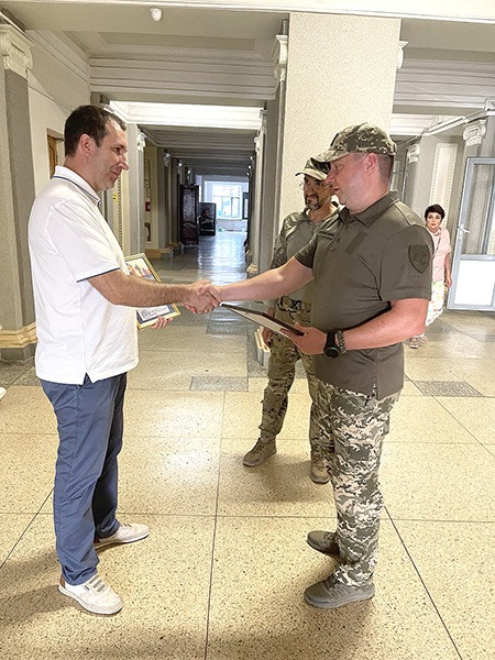 Проректор з науково-педагогічної роботи Максим Хаустов отримав Грамоту від командира підрозділу Добровольчого формування «ФЕНІКС» при 113 Окремій бригаді Територіальної оборони Харківщини Леоніда Могілевського. Військові висловлюють вдячність за вагомий внесок у справу забезпечення виконання завдань по зміцненню обороноздатності України, завдань з відсічі військової агресії та загарбницьких дій російської армії на території України, мужність, самовідданість і високий професіоналізм, активну громадську позицію, за людяність та безкорисливу плідну працю задля захисту Батьківщини.