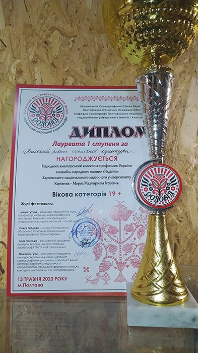 У конкурсі взяв участь дует від Народного аматорського колективу Профспілок України ансамблю народного танцю «Радість» Молодіжного творчого центру ХНМУ. Серед 38 колективів-учасників з різних міст України наші студентки показали високий рівень виконавської майстерності та отримали диплом Лауреата І ступеня за «Високий рівень сценічної культури».