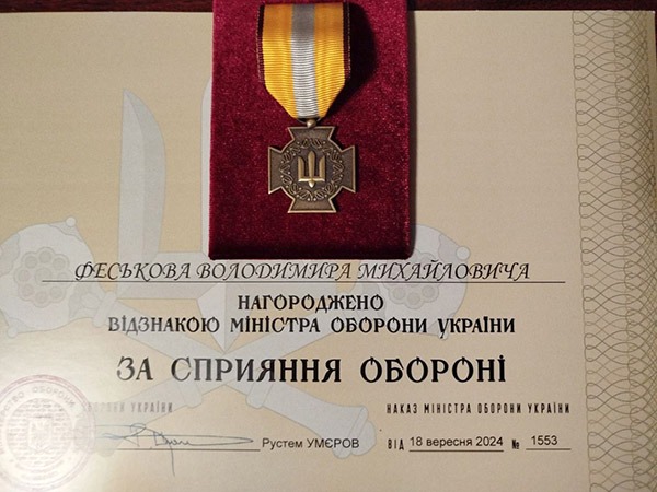 Доцента кафедри хірургії № 4 Володимира Феськова нагороджено відзнакою Міністра оборони України Рустема Умерова за надання медичної допомоги пораненим військовим та цивільним.