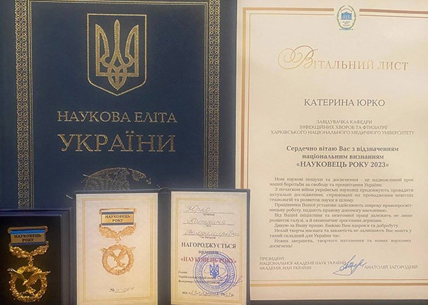 Так, нагороду і орден «Науковець року» завідувачці кафедри інфекційних хвороб та фтизіатрії професорці Катерині Юрко вручив голова Української федерації вчених і голова Наглядової ради ХНМУ Володимир Семиноженко.