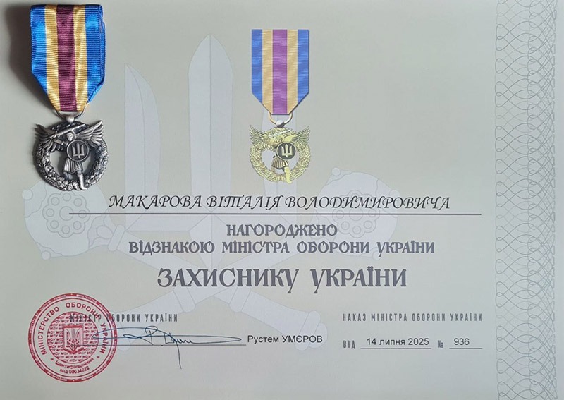 Наказом Міністерства оборони України № 936 від 14 липня 2025 року відзнакою «Захиснику України» нагороджено завідувача кафедри хірургії № 4, професора Віталія Макарова.