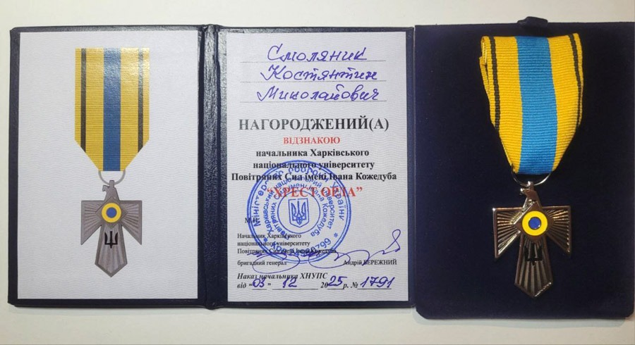 Відзнакою начальника Харківського національного університету Повітряних Сил імені Івана Кожедуба “Хрест орла” за надання медичної допомоги пораненим військовим та цивільним нагороджено доцентів кафедри хірургії № 4 Костянтина Смоляника та Володимира Феськова.