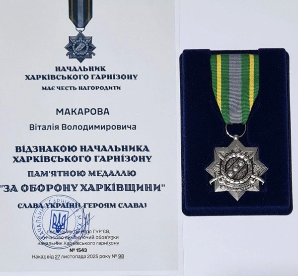 Завідувач кафедри хірургії № 4 професор Віталій Макаров був нагороджений відзнакою Начальника Харківського гарнізону – пам’ятною медаллю «За оборону Харківщини».