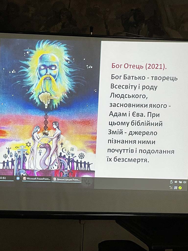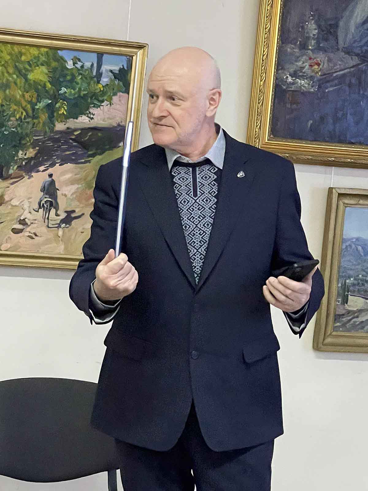 Під час презентації художнього альбому, який до речі був ініційований до видання саме Художнім музеєм, пан Володимир наочно продемонстрував, які твори потрапили до альбому і як вони створювалися. Також Володимир Олексійович подарував музею одну зі своїх картин.