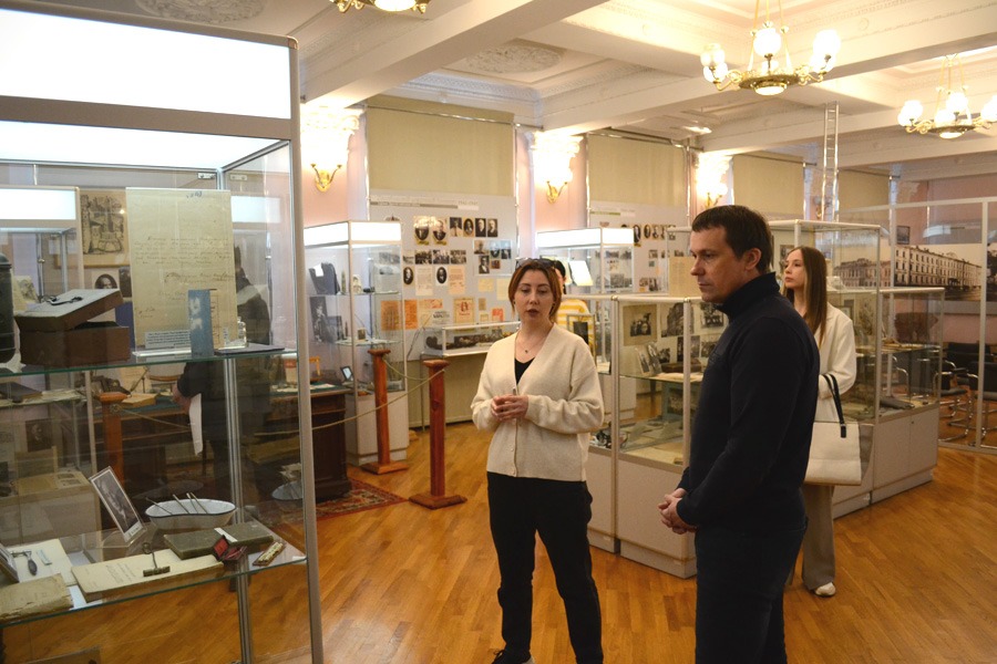 У ході візиту Сергій Убогов відвідав Музей історії ХНМУ, де ознайомився з експонатами та поділився своїми враженнями у Книзі відгуків. Цікаву та змістовну екскурсію для почесного гостя провела директорка Наукової бібліотеки Ірина Киричок – продемонструвала найпопулярніші локації та розповіла про роботу репозитарію. Пан Сергій був позитивно вражений масштабом проведеної роботи та технічними можливостями бібліотеки.