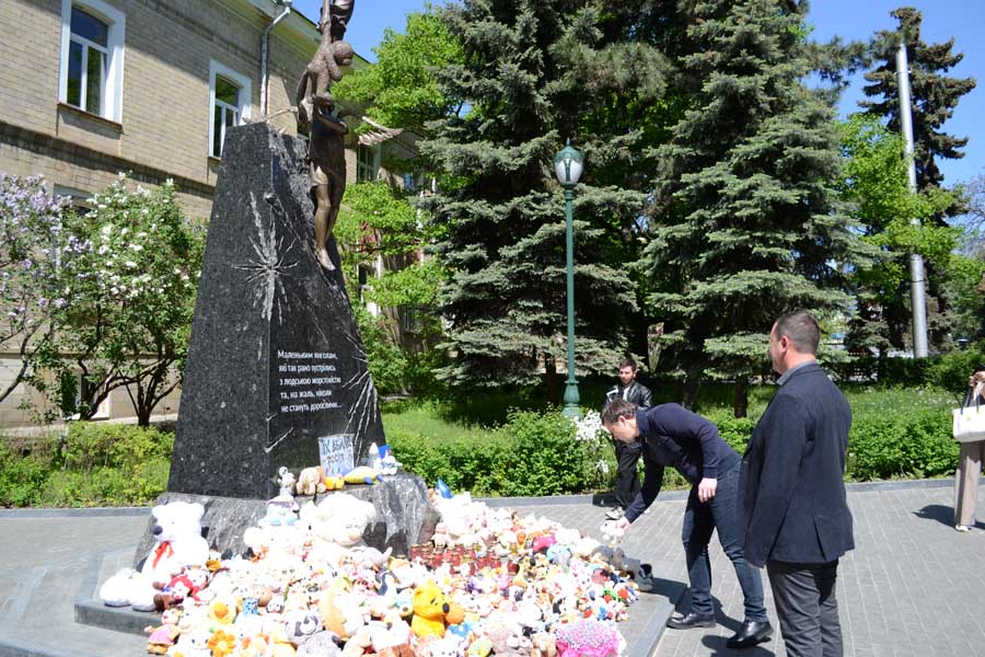 Між відвідинами локацій, запланованих під час візиту, пан Сергій вшанував пам’ять загиблих від російської агресії харківських діточок та поклав іграшку до пам’ятника маленьким янголам, які рано зустрілися з людською жорстокістю та, нажаль ніколи не стануть дорослими.