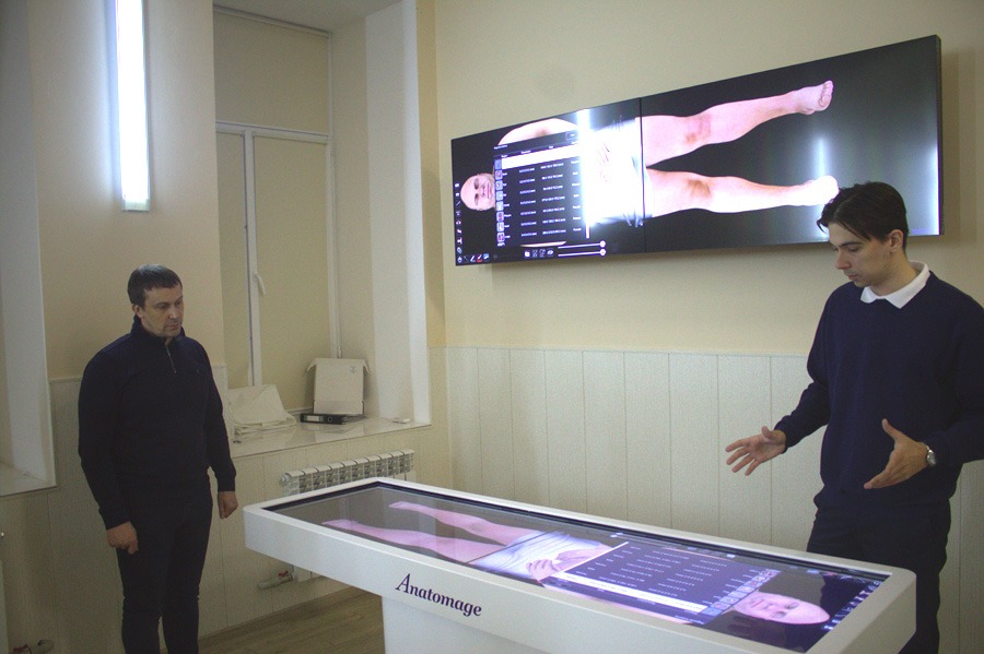Неабияку зацікавленість у Сергія Убогова викликав Центр дистанційного навчання, де він зміг ознайомитися з процесом навчання, електронними журналами, роботою АСУ та побачити, як проходять пари. Крім того, Сергій Убогов завітав до Центру симуляційної освіти та Центру тривимірних технологій ННІ ЯО ХНМУ. На кафедрі анатомії людини він ознайомився з лабораторіями симуляційних технологій, штучних органів та систем. Значну зацікавленість викликав навчальний музейний комплекс та атлас академіка Р.Д. Синельникова – перше національне видання з анатомії людини. Почесний гість зазначив, що в Харківському національному медичному університеті чітко простежується поєдання науки, освіти та практичних навичок, побажав і надалі рухатися у цьому напрямку.