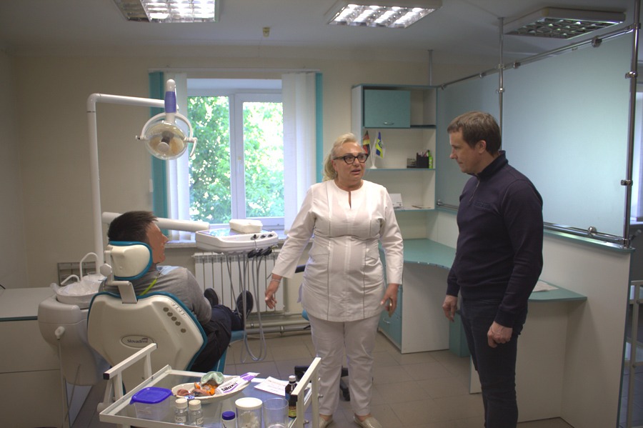 Крім того, Сергій Убогов ознайомився з базами ХНМУ та побачив, у яких умовах студенти набувають практичні навички. У стоматологічному центрі він переконався, що це не тільки головна клінічна база факультету, а й установа, в якій надають висококваліфіковану консультативно-лікувальну допомогу населенню м. Харкова та всіх регіонів України. Зараз працівники стоматцентру активно долучилися до надання медичних послуг учасникам бойових дій, військовослужбовцям і ветеранам.