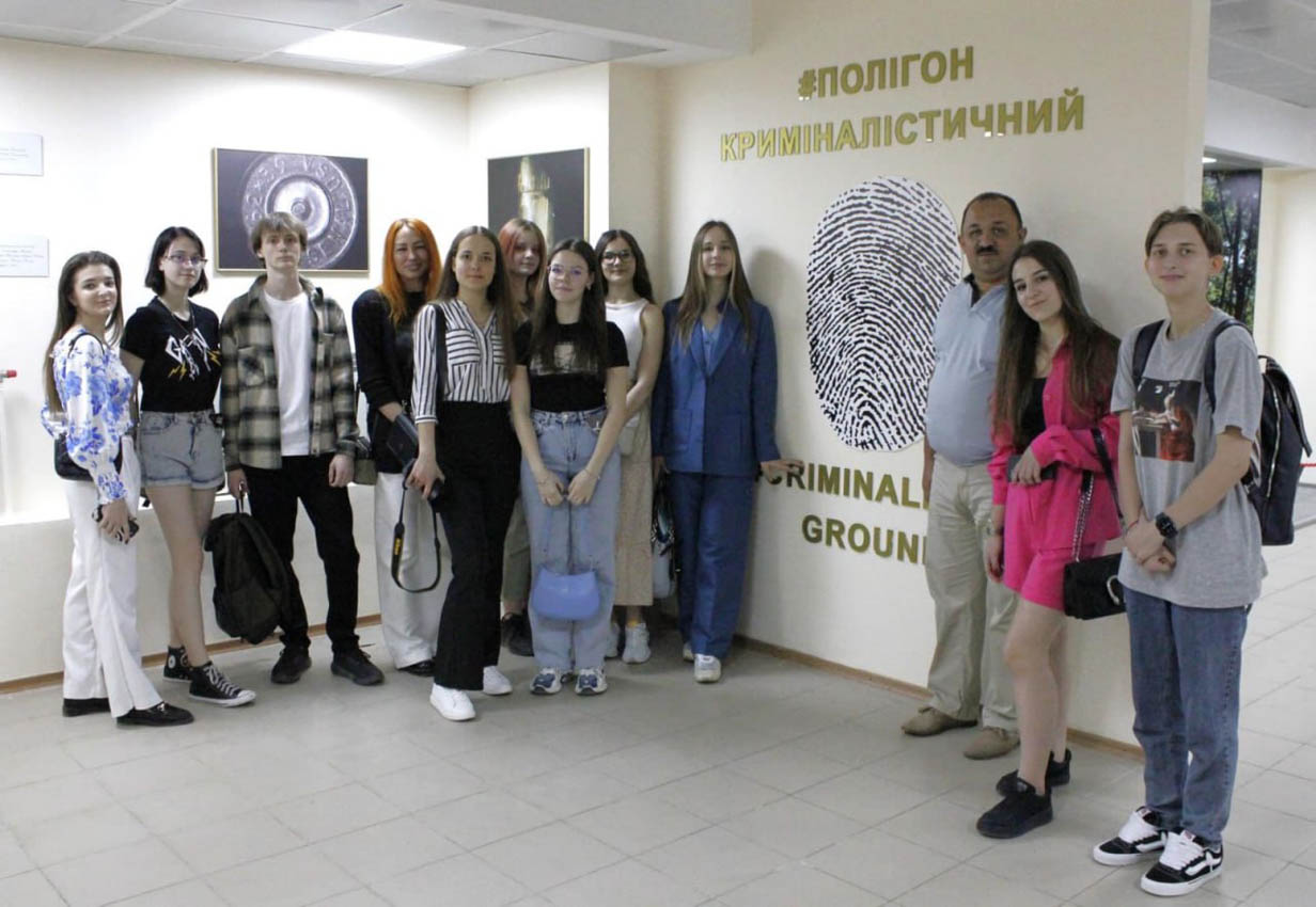 У рамках екскурсії по Криміналістичному полігону кафедри криміналістики хлопці та дівчата дізнались про життя та діяльність видатних учених-криміналістів, ознайомилися з відокремленими тривимірними інсталяціями тренувальних майданчиків, розробленими для відпрацювання знань та практичних навичок під час проведення окремих слідчих (розшукових) дій. Студенти отримали можливість познайомитися з такими дисциплінами, як криміналістика, юридична психологія та судова медицина.