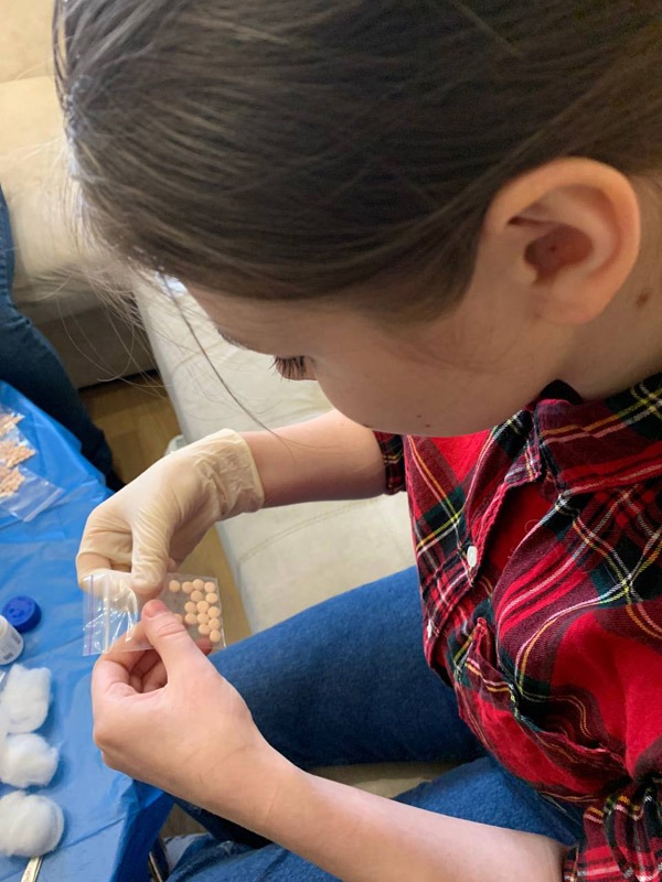 Партію ліків необхідно було розкласти порціями та підписати, щоб волонтери з організації RPG MEDICINE змогли надати гуманітарну допомогу та роздати потрібні таблетки якомога більшій кількості людей у прифронтовій зоні.