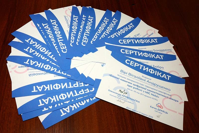 30 грудня в Харківському національному університеті відбулося вручення сертифікатів слухачам курсу підвищення кваліфікації «Базові навички цифрової компетентності лікаря при роботі з медично-інформаційною системою Helsi».