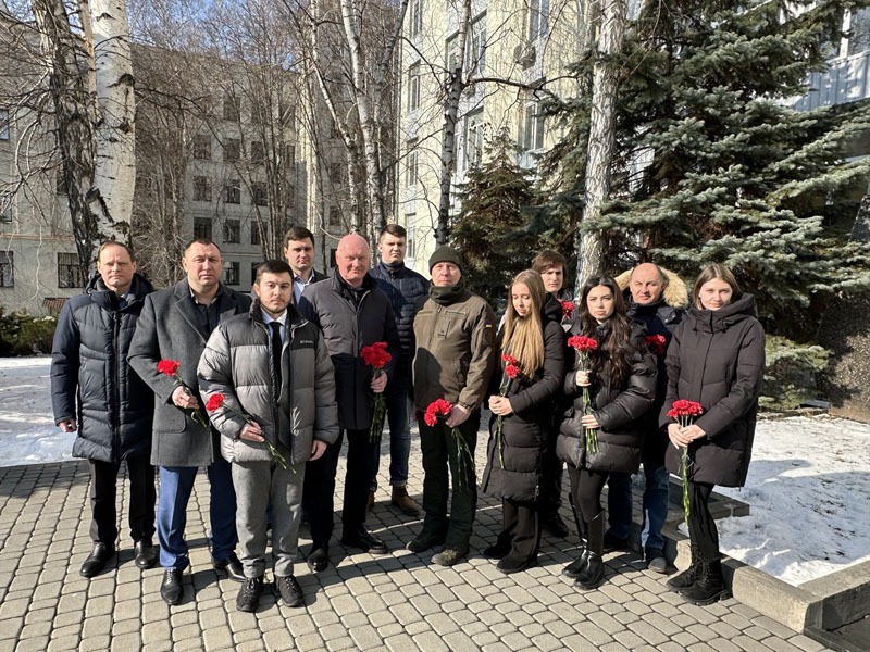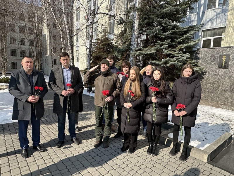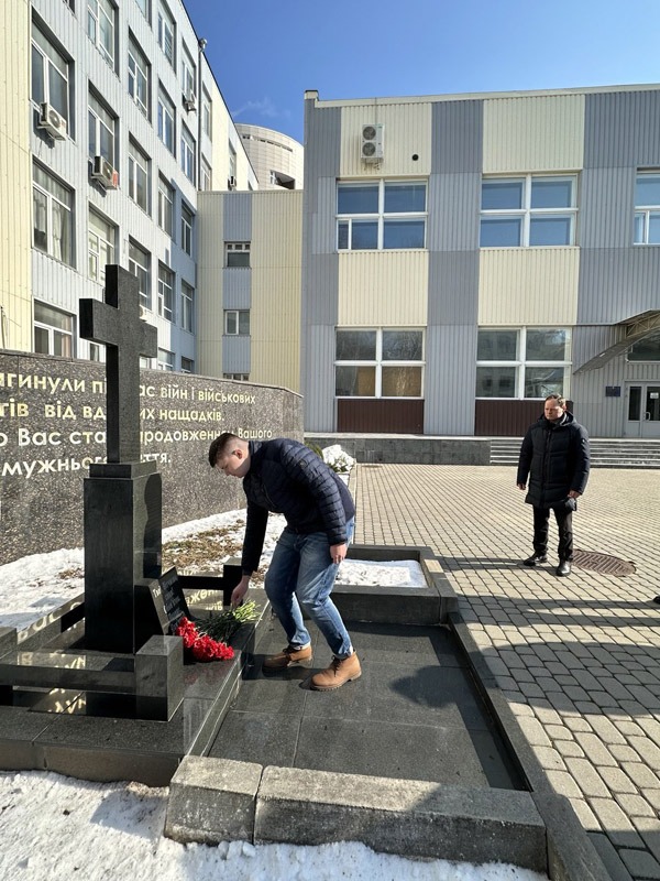 На знак вшанування пам’яті загиблих на війні лікарів 24 лютого 2025 р. в ХНМУ було проведено церемонію покладання квітів до Пам’ятника медикам, які віддали своє життя при виконанні своїх обов’язків. У церемонії взяв участь ректор ХНМУ Валерій М’ясоєдов, який наголосив, що 24 лютого 2022 р. доля кожного українця змінилася. «Три роки країна тримається завдяки тому, що на передовій стоять воїни Збройних сил України. Разом з ними фронт тримають всі, хто працює в тилу, в тому числі й медики. Відзначу, що завдяки тому, що тримається Харків, тримається і Україна, бо складно уявити щоб було, якби Харків впав», – зазначив Валерій Васильович.