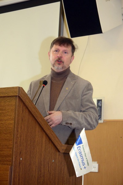 Із вітальним словом до учасників звернувся ректор Валерій М’ясоєдов, який підкреслив важливість розвитку сучасних управлінських компетентностей, проєктного мислення та грантової активності для сталого розвитку університету. Він наголосив, що саме ідеї, підкріплені ресурсами, технологіями та ефективною командною роботою, здатні трансформуватися у реальні проєкти, а також висловив упевненість у зростанні кількості грантових ініціатив в університеті.