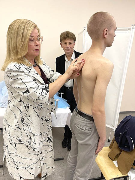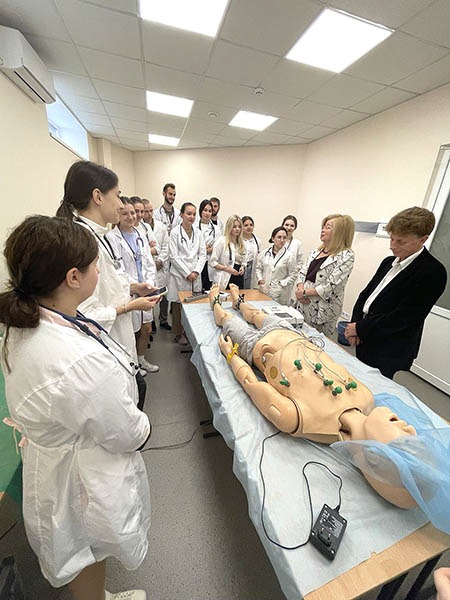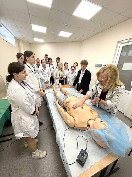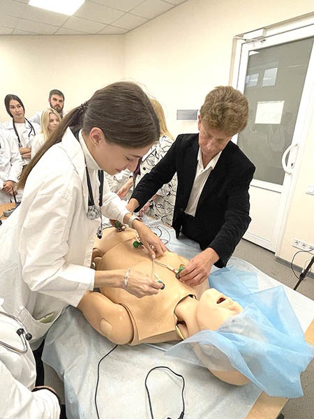 Перше заняття зі здобувачами освіти особисто відвідала завідувачка кафедри внутрішньої медицини № 3 та ендокринології професорка Лариса Журавльова. Вона наголосила на важливості набуття студентами клінічного досвіду в діагностиці та лікуванні захворювань під час військового стану, а також провела майстер-клас з освоєння практичних навичок.