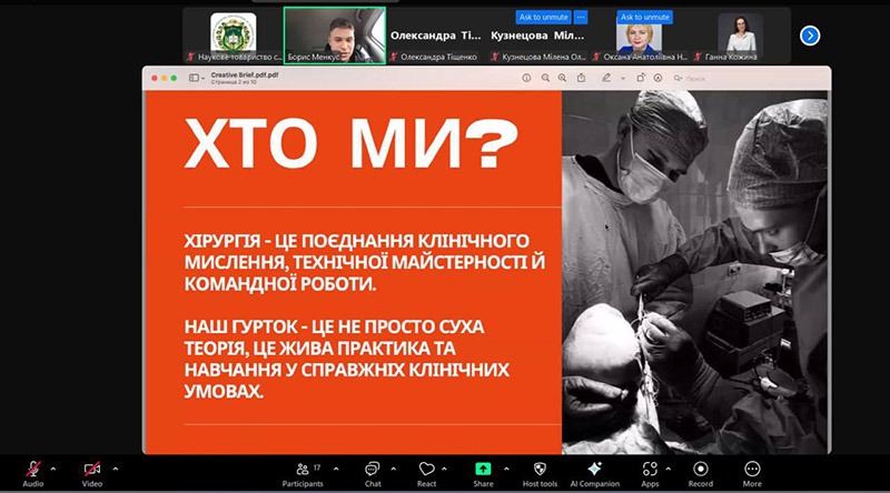 На початку заходу учасників привітала в.о. проректора з наукової роботи Оксана Наконечна, яка зазначила, що наука – це не лише лабораторії й підручники, а передусім це пошук істини, бажання змінювати світ на краще й відповідальність за майбутнє. «Особливе місце сьогодні хочеться присвятити студентським науковим гурткам. Саме тут зароджується перший інтерес до досліджень, формується критичне мислення та навички, які виходять далеко за межі аудиторій. Це середовище, де студенти мають можливість не лише вивчати медицину, а й створювати її», – підкреслила пані Оксана.