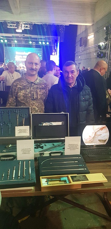 У рамках заходу також було представлено експозицію наукових розробок, у тому числі набори магнітного хірургічного інструменту (малий, великий, ендоскопічний) для видалення сторонніх тіл. Співавторами розробок від ХНМУ та Військово-медичного клінічного центру Північного регіону стали завідувач кафедри хірургії № 4 Віталій Макаров і професор кафедри, полковник м/с Володимир Негодуйко.