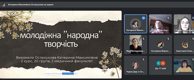 До відеозустрічі приєдналися студенти та гості, запрошені бібліотекою. Захід відбувся за ініціативою Науковою бібліотекою спільно із сектором медіа-простору Студентського самоврядування ХНМУ за сприяння ННІ якості освіти (модератори: директорка НБ Ірина Киричок та студентка ІІ курсу ІІ медфакультету Катерина Остроухова).