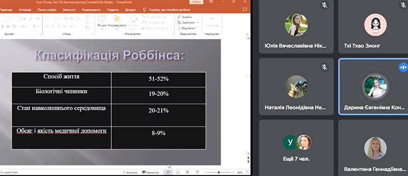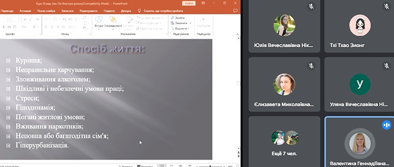 На занятті були розглянуті питання поведінкових факторів ризику неінфекційних хвороб, у тому числі спричинених ментальними розладами та зловживанням психоактивними речовинами, принципи здорового та збалансованого харчування, про вплив фізичної активності на організм. Висвітлені питання профілактики соціально-значущих захворювань, санітарно-просвітницької роботи серед населення та акцентувалася увага на здоровому способі життя.