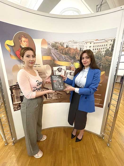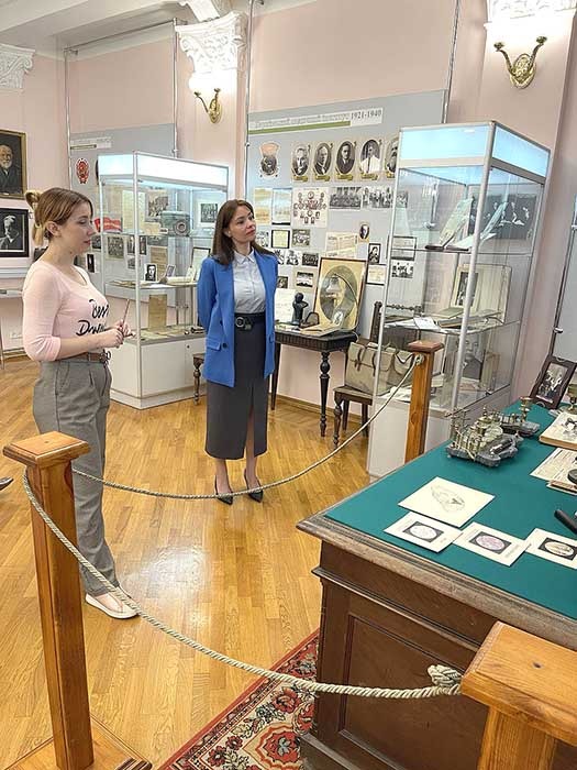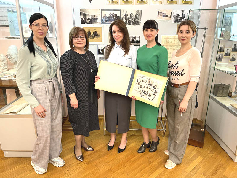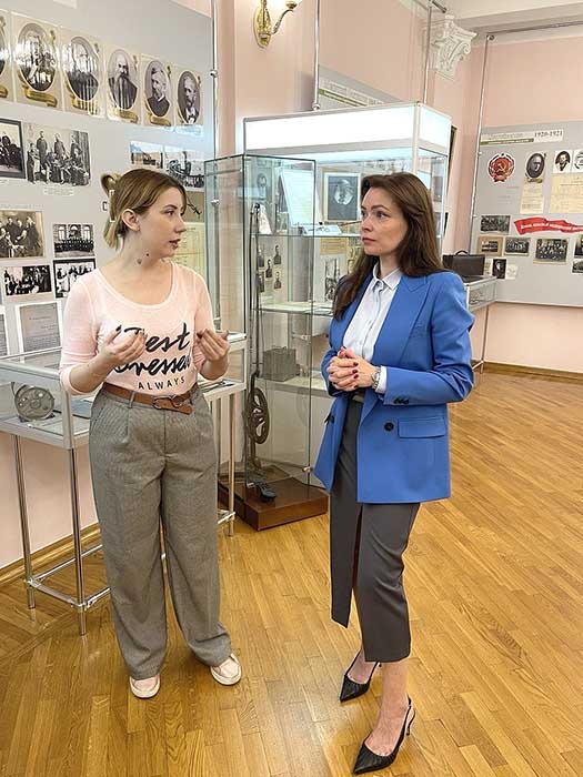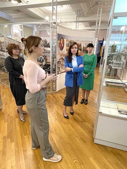 У ході дружної бесіди Юлії Рибінської із представницями нашого університету, а саме зі зберігачками музейних фондів Оленою Семененко та Ольгою Виноградовою, помічницею ректора Яною Бєлєвцовою та директоркою Наукової бібліотеки Іриною Киричок були обговорені пам’ятні історичні події минулих років, проведена міні-екскурсія та окреслені подальші шляхи взаємодії з представниками родини випускника Харківського Імператорського університету.