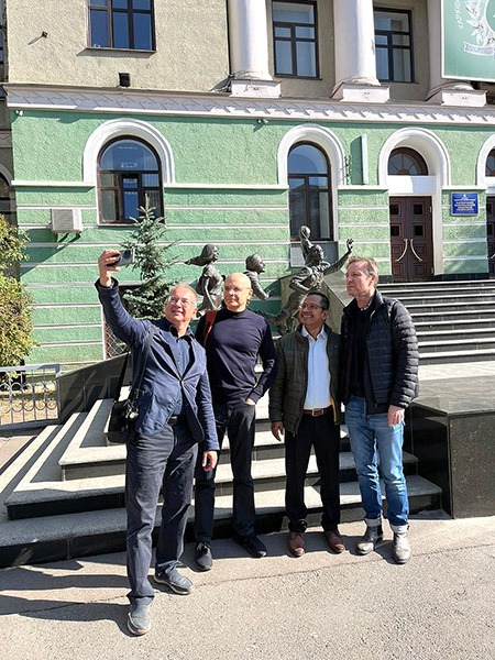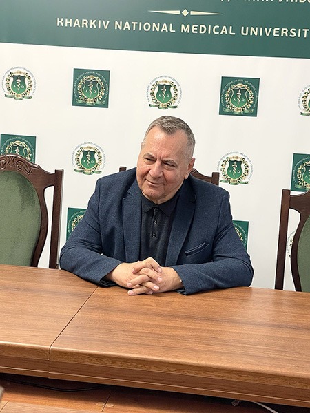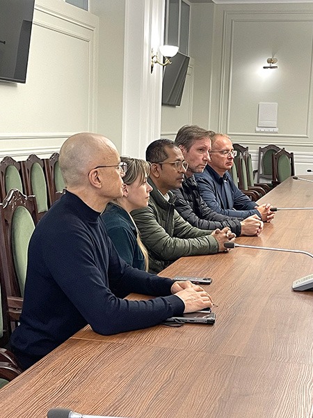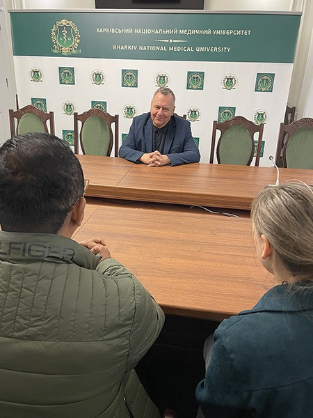 З в.о. ректора ХНМУ Валерієм Капустником зустрілися екс-керівник проєкту МКЧХ з впровадження протоколів реабілітації в Україні Ян Друє, його наступник Кумар Суджит, а також Ігор Ігнатьєв, Наталія Різуненко та Володимир Коростій.
