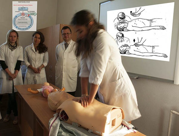 - Симуляційне обладнання: манекен для відпрацювання навиків серцево-легеневої реанімації з інтубацією, манекен для реанімації для дітей і накладки на манекен для дорослого, які імітують травму.